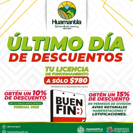 ÚLTIMO DÍA DE DESCUENTOS EN TRÁMITES Y SERVICIOS EN HUAMANTLA