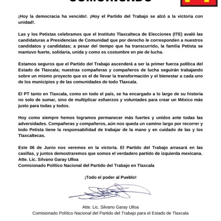 EL PT SERÁ LA PRIMERA FUERZA POLÍTICA EN TLAXCALA