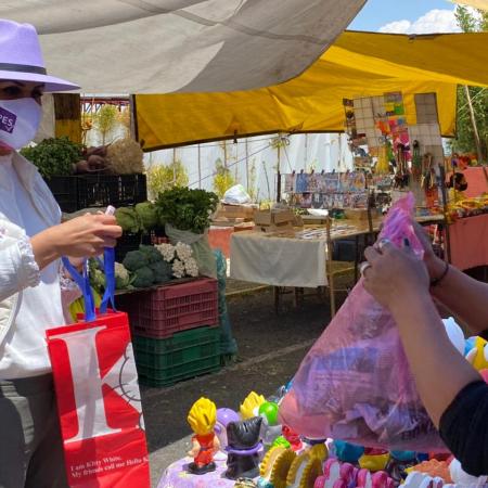 Entre propuestas y una caminata, visita Liliana Becerril Rojas el mercado del municipio de Tzompantepec