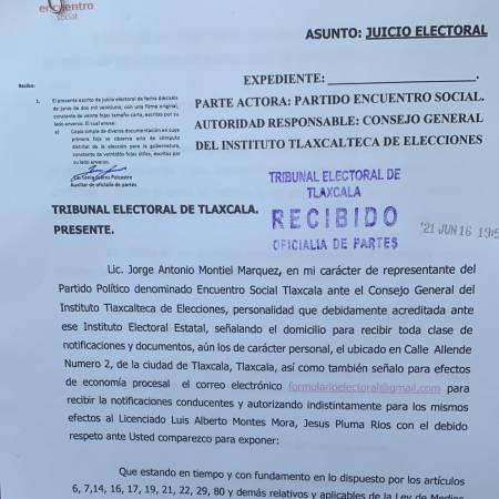 El PEST presenta impugnación ante el Tribunal Electoral de Tlaxcala