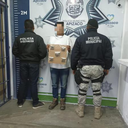 Policía Municipal de Apizaco detiene a presunto narcomenudista; decomisaron envoltorios con droga