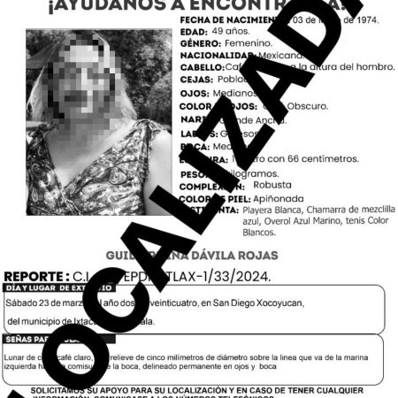 UBICA PGJE A MUJER REPORTADA COMO NO LOCALIZADA CON VIDA