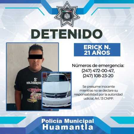 RECUPERA POLICÍA DE HUAMANTLA VEHÍCULO CON REPORTE DE ROBO Y DETIENE AL LADRÓN EN EL ACTO