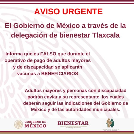 Anuncia Bienestar Tlaxcala nuevas fechas de vacunación