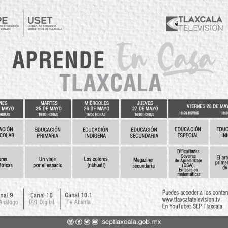 SEPE PRESENTA BARRA TEMÁTICA DE “APRENDE EN CASA TLAXCALA” DEL 24 AL 28 DE MAYO