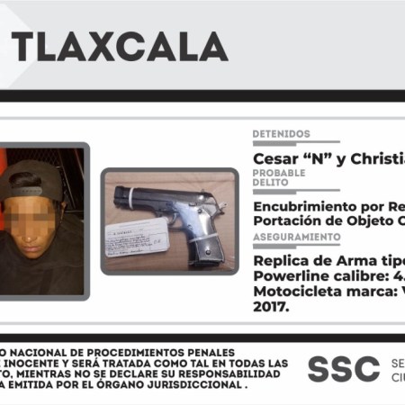 POLICÍA ESTATAL DETIENE A DOS PERSONAS CON UNA RÉPLICA DE ARMA DE FUEGO Y UNA MOTOCICLETA CON REPORTE DE ROBO