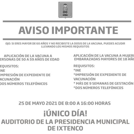 Mañana único día para la aplicación de la segunda dosis de la vacuna Aztra Zeneca en Ixtenco