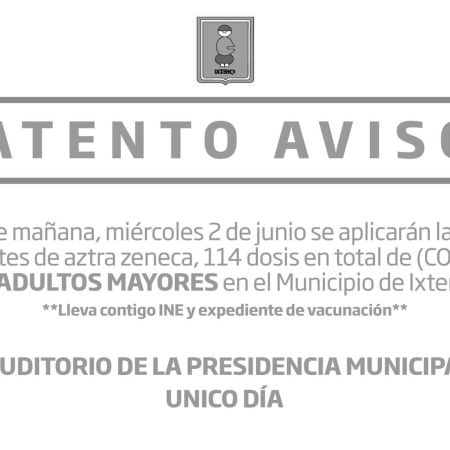 Mañana, llega la segunda dosis de la vacuna para los adultos mayores de Ixtenco